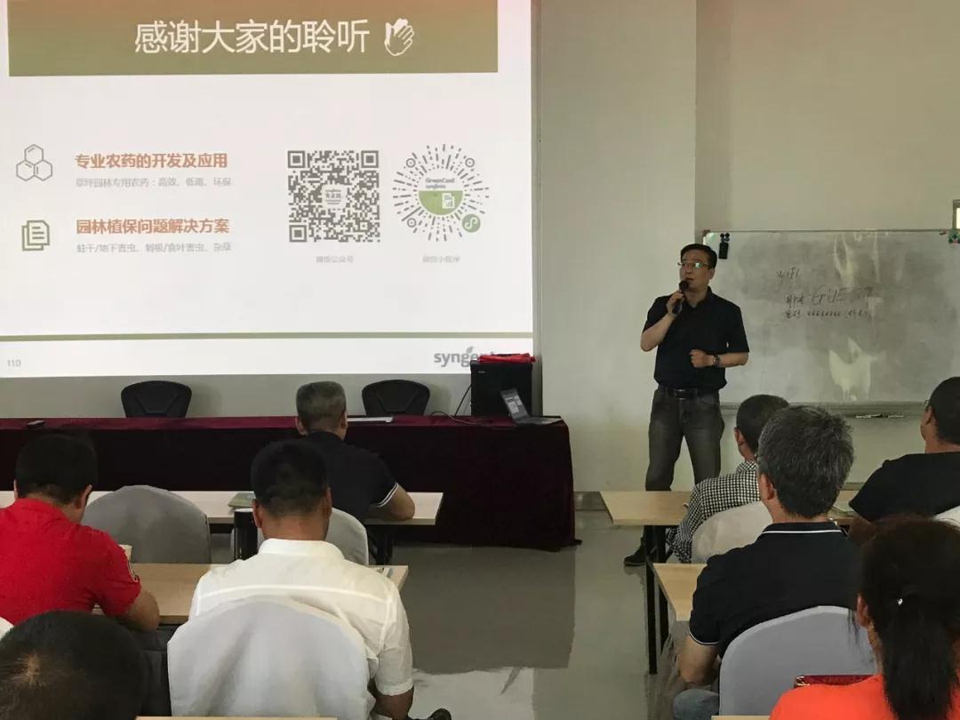 培訓課上,綠友機械集團股份有限公司植保部總經理顧新麗和先正達(中國)投資有限公司專業(yè)環(huán)境部技術主任李鵬分別為我們分享了《園林重大病蟲害的發(fā)生與防治(案例分析)》、《園林專業(yè)農藥的開發(fā)應用及常見問題質保方案》兩個話題。