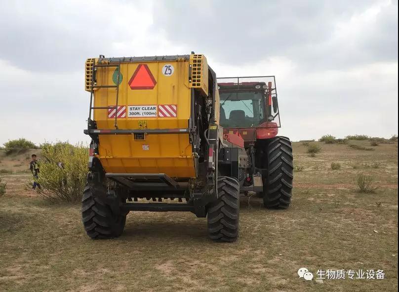 在為期4日的演示過程中,設(shè)備表現(xiàn)完美,超乎想象。在拖拉機的牽引下,一行行的檸條被設(shè)備吃進肚子,消化一會便后拉出個大大的“金粑粑”。