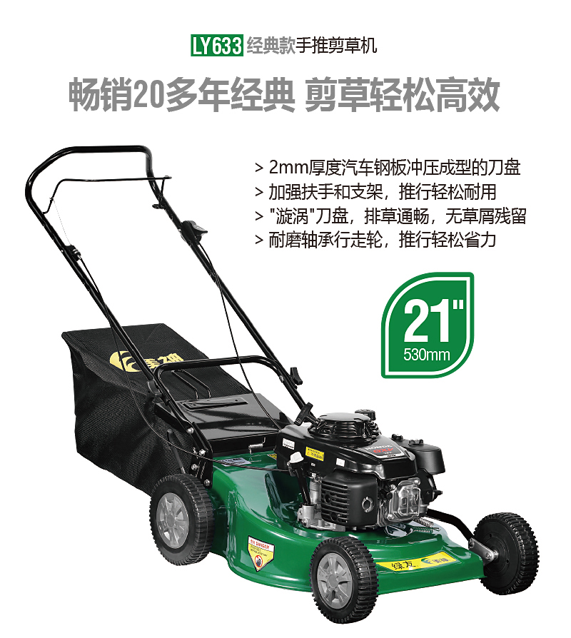 21寸草坪修剪機具有自走和手推兩種行走方式可供選擇。