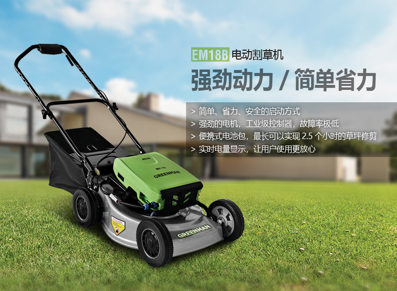 18寸電動草坪修剪機,實現(xiàn)了草坪修剪的電動化,具有噪音低,無污染, 操作簡單,適用于社區(qū)、學(xué)校、單位等場所使用。