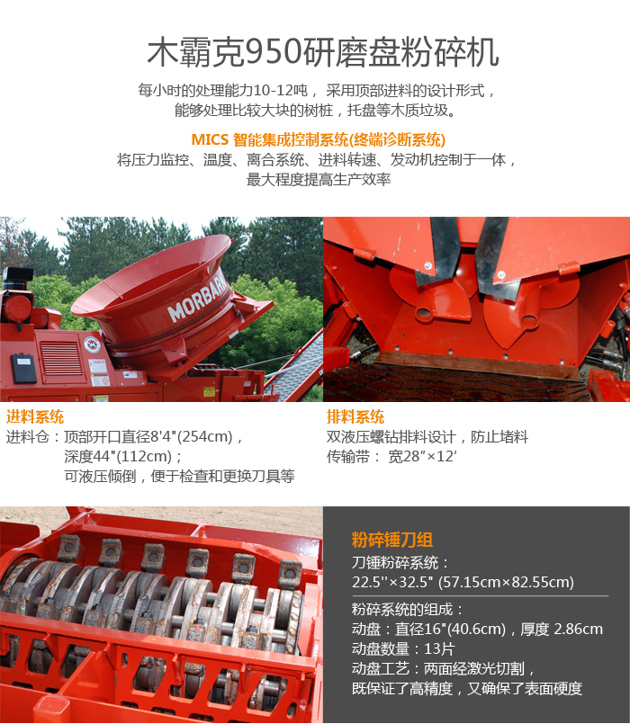 950立式粉碎機(jī),每小時(shí)的處理能力10-12噸, 采用頂部進(jìn)料的設(shè)計(jì)形式,能夠處理比較大塊的樹(shù)樁,托盤(pán)等木質(zhì)垃圾。