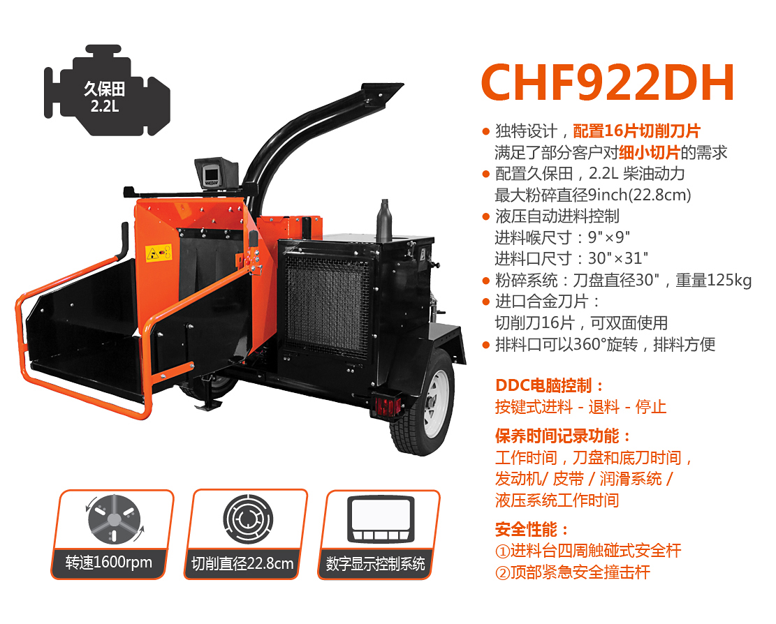 老熊(BEARCAT)品牌樹枝粉碎機(jī),配置久保田2.2L柴油機(jī),動(dòng)力更強(qiáng)勁,最大可切削直徑23cm樹枝;智能液壓進(jìn)料系統(tǒng)可自動(dòng)監(jiān)控發(fā)動(dòng)機(jī)轉(zhuǎn)速和進(jìn)料狀態(tài),根據(jù)進(jìn)料負(fù)荷的大小自動(dòng)調(diào)整進(jìn)退料;噴料口可360度旋轉(zhuǎn),隨意選擇噴料方向;切削刀片經(jīng)過(guò)特殊處理,堅(jiān)固耐用并可多次修磨。